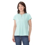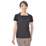 首元をスッキリとみせてくれる、トラペーズネックラインのプルオーバーです。生地には、接触冷感機能のあるシャイニースムース素材を使用。
