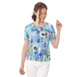 バイオシルスムース 花柄ラウンドギャザー 半袖プルオーバー
