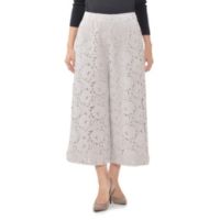 華やかなレースが装いをクラスアップしてくれる、お洒落な大人のワイドパンツです。フラワー柄のレースに、フロッキー加工を施した素材を使用。