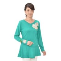 立体感のあるフラワー刺繍を胸元と袖口にあしらった、フェミニンなニットプルオーバーです。2つのフラワー刺繍が、お顔周りとお手元を明るくエレガントに演出。