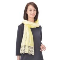 華やかなフラワーレース生地をベースに、異素材を組み合わせた、フェミニンなストールです。両サイドにあしらったスカラップレースが存在感を放ち、印象的なデザインに。