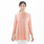 優しい雰囲気のバタフライスリーブが目を引く、フェミニンなプルオーバーです。身生地には、スムースシルケット加工を施した素材を使用。