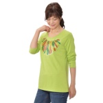 ラウンドネックにビジューをあしらった、上品なプルオーバーをご紹介します。生地には、着心地の良いレーヨン混素材を使用。