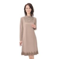 胸元の程よいドレープと、裾のスカラップレースがエレガントなワンピースをご紹介します。ジャージー素材を使うことで、きちんと感がありながらも普段使いしやすいリラックス感のある着心地に。