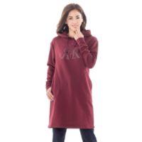 きれいめカジュアルなデザインの、フーテッドチュニックをご紹介します。ワンピースとしても、ボトムスと合わせてチュニックとしてもお召しいただけるアイテム。胸元にRのデザインロゴをラメプリントして、トレンド感のあるアクセントを添えました。