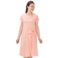 ウエストにリボンをあしらった、アシンメトリーなデザインのワンピースです。麻混の涼しげな素材を使用。フロントにファスナーを付け、楽に脱ぎ着ができるようにしました。