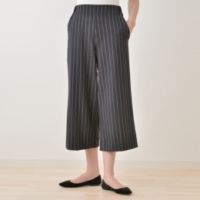 ストレッチ素材で仕立てた、ワイドシルエットのパンツです。縦にストライプを入れることで、すっきりとした印象に仕立てました。