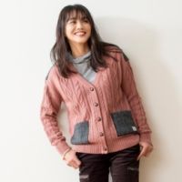 ハリスツイードの生地を部分使いした、クラス感のあるニットカーディガンです。本体編地はチクチクも感じにくく着用感も良い、ふんわりと柔らかなアクリル糸を使用。