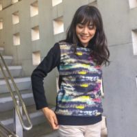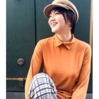 襟ぐりにシャツカラーを付けた、被りタイプのプルオーバーです。身生地は、伸縮性の良いカットソー生地を使用。