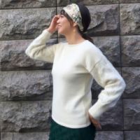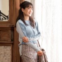 袖と身頃を違う編地で切り替えた、フェミニンなニットプルオーバーです。身頃には、ふわふわで目の詰まった編地を使用。