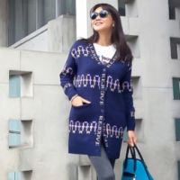 プレーティング編みで浮き上がるように編んだ星模様がお洒落なプルオーバーです。シャリ感のある強撚の糸で編み立てたニット素材を使用。