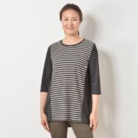 ジャカードとポンチで、さりげない異素材使いがおしゃれなチュニック。脇のパネルライン切替やタック使いのテクニックで、身体のラインを美しく見せてくれます。
