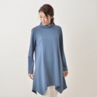 前身頃裾をリブで切替えた、アシンメトリーデザインのチュニックです。絶妙な切替位置とテクニックで、左右のバランスをとってデザイン。
