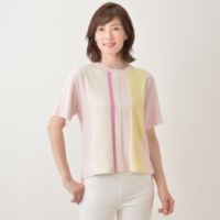 袖口の配色ラインがポイントになった、フレアスリーブのTシャツです。横広浅なラウンドネックが、カジュアルな中にも女性らしさを演出。