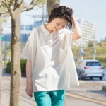 鹿の子素材を使用したポロシャツです。さらりとした肌ざわりで、着心地よく。襟・袖・ポケットにはレースを配して、メンズライクになりがちなポロシャツをキュートに仕上げました。