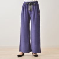 ウォーム感のあるワイドパンツです。温かみのあるコーデュロイのような畝のある表面感で、綿・ポリエステル・ポリウレタン混紡の、ストレッチ性のあるニットコール素材を使用。
