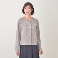 カジュアルからフェミニンまで、着こなし次第で幅広いシーンで活躍するカットソー仕立てのGジャンです。生地は、柔らかなカットデニム素材を使用。