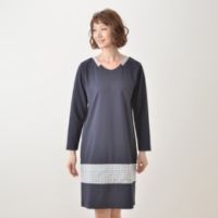 ゆったり着用できるボックスラインのワンピースです。生地には、表面に畝が綾目に走る、ツイル目の凹凸感がある素材を使用。