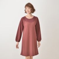 すっぽり被るだけで大人カジュアルなスタイルが決まる、ドッキングデザインのパーカーワンピースです。トップスには裏毛素材を、スカート部分には楊柳ガーゼ素材を使用。