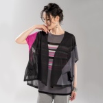 シフォンの衿がポイントになった、異素材コンビのジレです。シフォンをたっぷりと使用し、美しいドレープ衿を表現しました。