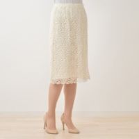 ウールをブレンドした、ケミカルレース使いのAラインスカートです。クラス感のある素材を活かした、総レース仕立て。