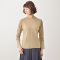 袖口のレースがお洒落な、セミタートルネックのウール混プルオーバーです。程よい高さと着心地に配慮したセミタートルネックと、透け感をデザインした袖口のレースがポイント。