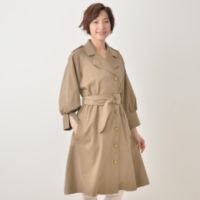 落ち感のある風合いが優しい印象のトレンチコート。薄めのソフトな素材でおつくりしているので、分量感のあるデザインでも軽い仕上がり。
