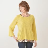 1枚で重ね着風に着こなせる、プルオーバーです。インナーに合わせた、幾何学柄が透けるデザイン。大胆な柄も無地を重ねることで着やすく、簡単にコーディネートが完成します。