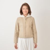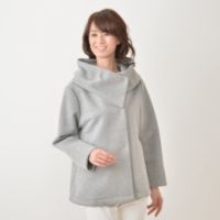 ボリュームある変型フードが女性らしさを漂わせる、一重仕立てのジャケットです。表裏で色が違う、スポンジングのリバーシブル素材を使用。