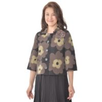 ラメオーガンジーで、お花のパッチワークをあしらったジャケットです。キラキラの素材感が、華やかさを引き立てるデザイン。