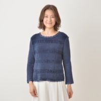 柔らかなチュールフリルをふんだんに縫い付けた、プルオーバーをご紹介。身頃は柔らかなカットソー素材とチュールの2枚重ねで、透け防止効果を重視しました。