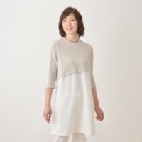 異素材使いが目を引くチュニックです。しっかりとした素材でありながら、着ていることを忘れるほど軽い着心地。