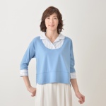 下にストライプシャツを重ねたように見える、重ね着風デザインのプルオーバーです。きちんと感あるシャツカラーで、ONにもOFFにも活躍。