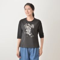 手書き風オリジナルプリントをあしらったTシャツです。動きのある筆の風合いを生かしたこだわりのプリントに、ラインストーンの煌きをプラス。
