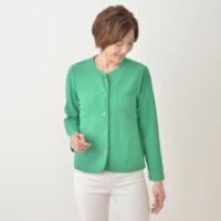 ふくれジャガードで仕立てたカーディガンです。表情のある素材と、コンパクトですっきりしたシルエットが魅力。