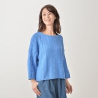 ニット素材のプルオーバーをご紹介。縦のラインを強調するケーブル柄に編み上げることで、すっきりとした印象をもたらします。