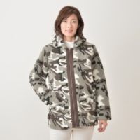 牡丹のお花をプリントしたオリジナルの生地が、「ノコオーノ」らしい華やかさを醸すジャケットです。衿ぐりやポケット飾りのライン使いのフリルで、ちょっぴりスポーティさもプラス。