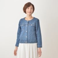 RosePeche 楽々ストレッチノーカラーデニムジャケット