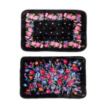 上品な花柄の刺繍がアクセントのジャガードポシェット。表地と裏地の間にわたを入れ、ソフトな触り心地に仕上げました。