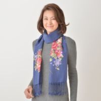 「レイクアルスター」より、華やかなプリントが目をひく、大判のストールをご紹介します。幅約62cm、長さ約190cmの大判サイズで、羽織りものや防寒用としてもおすすめ。