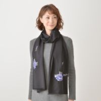 ソフトな風合いの薄手のウールにパトリシアのローズを機械刺繍で表現したストールです。全長は約198cmと、大判タイプ。