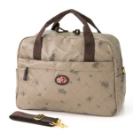 バラと蔦とロゴをあしらったオリジナルデザインのプリント生地が素敵な、ボストンバッグ。ドイツ製シェニール織を使用したワッペンが、華やかなアクセントを添えています。