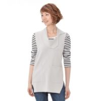Uネックラインに大きな衿をあしらった、変形オフタートルネックのニットベストです。シャリ感のある糸を使用し、サラリとした肌触りに。