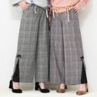 &LOVE レースデコレーションのチェック柄ワイドパンツ