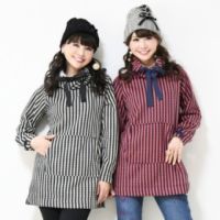 程良い肉感の裏起毛素材。肌触りが優しく、とても心地よく暖かなチュニックです。ハートラインを2配色のストライプ状にした、総プリント仕上げ。