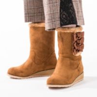 リボン使いが大人可愛い、ムートン風ブーツをご紹介します。本体に高級感のある質感の柔らかいフェイクスエードを使用。
