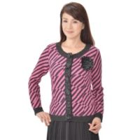 柔らかなシフォン素材のジャケット。斜めストライプ柄をくり抜いてパッチワークを施し、ドット柄を浮かべて立体感を出しました。