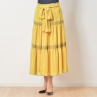 手の込んだスモック刺繍を施し、さらにティアードにした、贅沢なロングスカートです。スモックの配色糸で、デザインにアクセントを添えました。