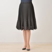 数種類のプリーツと、カットワークを施したスカートをご紹介します。ウエスト部分は複数の種類のプリーツを、裾にはぐるりと細かなカットワークを施しました。