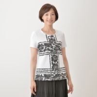 華やかな牡丹の花をプリントしたTシャツです。適度なゆとりのあるサイズ感と伸びのよい素材感で、心地よい着心地。